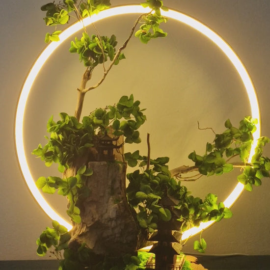 ➡️ Pièce unique – Fait main ➡️ Matériaux : bois, mousse, pierre, LED, éléments naturels ➡️ Lumière blanche chaude ➡️ Dimensions : environ 25–30 cm