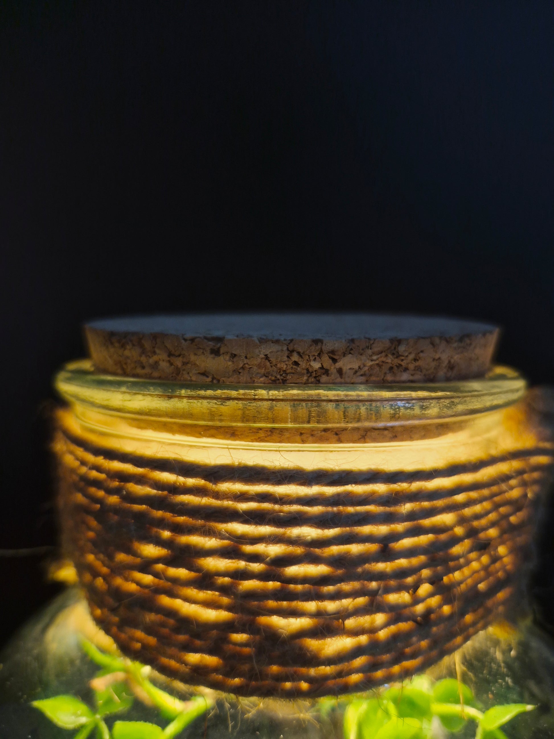 Caractéristiques techniques : • Contenant : grand bocal en verre avec corde naturelle • Matériaux : mousse artificielle, fleurs artificielles ,pierre naturelle • Statue : figurine méditative en pierre • Éclairage LED à basse consommation • Dimensions :50cm • Modèle unique fait main